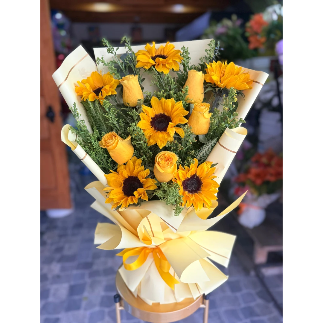 Ramo de girasoles y rosas
